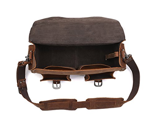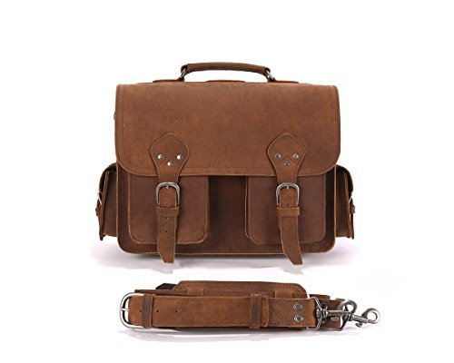 -. Feature : We only use the finest single-ply, boot-grade leather, carefully constructed for quality that lasts. / Suede front-flap lining for a softer, more attractive interior. / No breakable parts - no zippers, snaps, etc. / Adjustable leather strap with 20-28" drop. / 5.8 lbs and 16" Wide x 4" Deep x 12" Tall (Fits laptops up to 14.5" wide)