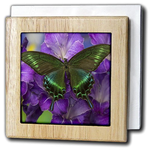 3dRose nh_228394_1 "The Common Peacock Swallowtail Butterfly" Tile Napkin Holder, 6", Natural