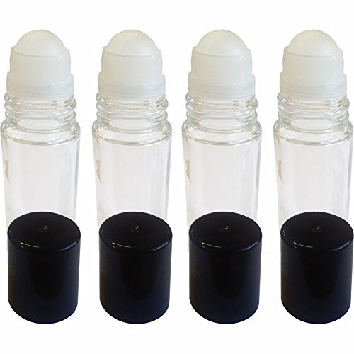 4 Pack of Roll On Empty Glass Bottles for Essential Oils - Refillable Roller Color Roll On - Bulk - 30 ml 1 oz Pack of 4 -Clear Color
