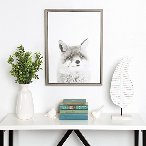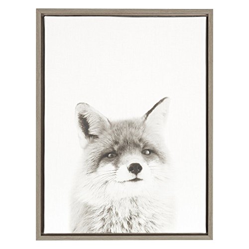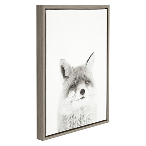 Display your love of animals in your home with this curious fox portrait. Printed and framed in the USA in Waunakee, Wisconsin, this framed floating canvas art will be a stunning wall art piece to look at every day in your living room, bedroom, kid's room, or any room in the home. Printed on gallery wrapped canvas and framed with a gray woodgrain high quality polystyrene frame, this animal wall art has two sawtooth hangers already attached to the black inset back for easy wall display. The outer dimensions are 24 inches tall by 18 inches wide by 1.6 inches deep.