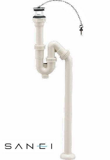 洗面器のオーバーフロー用排水トラップです。Sトラップ・Pトラップの兼用なので、洗面台の下をスッキリ見せます。