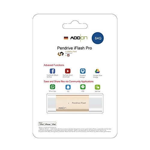 [Apple MFI Certified] Addon Pen Drive iFlash USB 3.0 Interface Flash Drive with Lightning Connector Compatible to All iPod /iPhone /iPad & & Computers(64GB Gold)