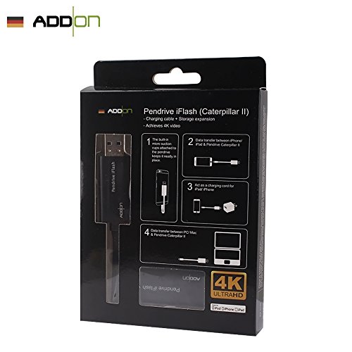 [Apple MFI Certified] Addon Pen Drive 64G USB 3.0 iPhone Flash Drive 2 in 1 Charging Cable Compatible to All iPod /iPhone /iPad & & Computers (64G BLACK)