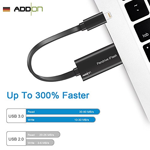 [Apple MFI Certified] Addon Pen Drive iFlash USB 3.0 Interface Flash Drive with Lightning Connector Compatible to All iPod /iPhone /iPad & & Computers(64GB Iron Gray)
