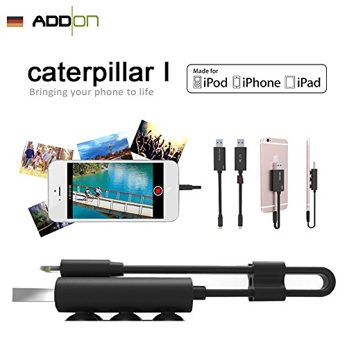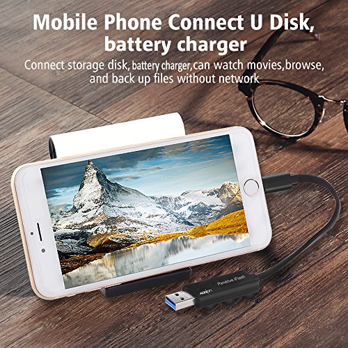 [Apple MFI Certified] Addon iPhone Flash Drive Memory Stick 32G USB 3.0 Interface Flash Drive with Lightning Port Compatible to All iPod /iPhone /iPad & & Computers 2 in 1 Charging Cable( 32G BLACK)