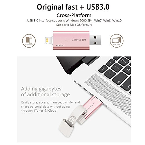 [Apple MFI Certified] Addon Pen Drive iFlash USB 3.0 Interface Flash Drive with Lightning Connector Compatible to All iPod /iPhone /iPad & & Computers(32GB Rose gold)