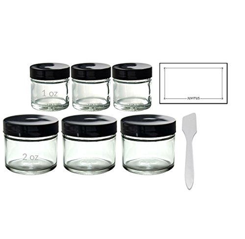 Clear Glass Straight Sided Jar Includes 3 -1 oz Clear Glass Jars and 3 -2 oz Clear Glass Jars (6 pack) + Spatulas and Labels for Aromatherapy, Essential Oils, Travel...