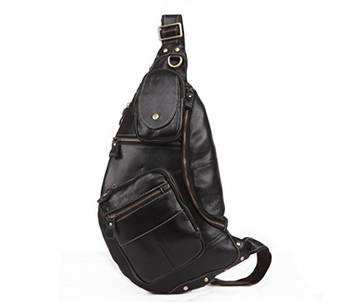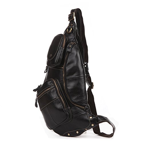 -. Title : BAOSHA XB-09 Stylish Genuine Leather Men's Shoulder Sling Backpack Cross Body Chest Bag Black