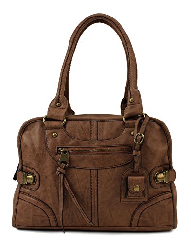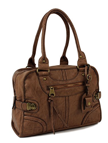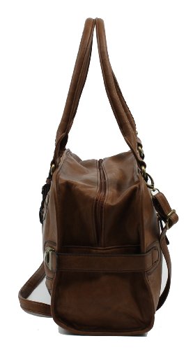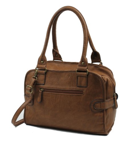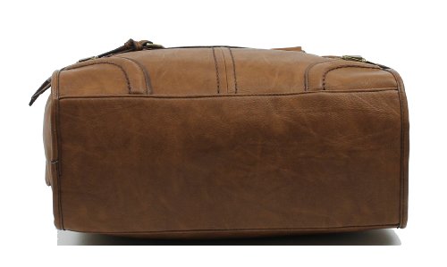 -. Feature : Ultra soft synthetic leather with fabric lining and classic bronze-toned hardware. / Zipper closure, interior and exterior zipper pockets. / Removable and adjustable shoulder straps drop 22". Two handles. / Comfortably holds an iPad, iPad Mini, other tablet or a laptop 11" and under. / Size: 13.5"x 9.3" x 5.3"