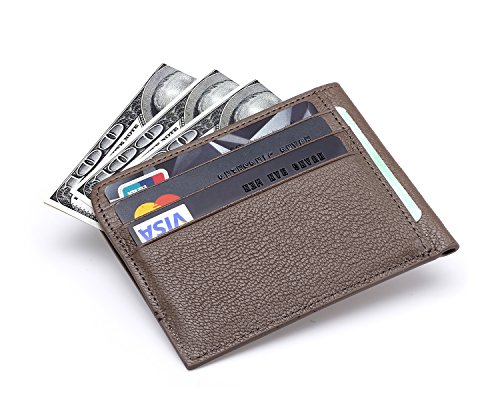 -. Feature : ✔ SLIM FRONT POCKET WALLET. This leather card holder is beautifully designed to be slim and feels amazingly soft. Sturdy enough to last a long time, its super slim figure makes it easy to slide into your front pocket. The size of this minimalist wallet is 4.4 x 3.3 x 0.1 inches. / ✔ SIMPLE BUT PRACTICAL. This slim front pocket wallet features 8 card slots in total, 3 horizontal slots and 1 larger vertical slot on each side. There is an area in the middle where some cash or receipts could be stashed. Easy to remove cards from the slots. However, it might be tight with two cards in them. You can use this compact wallet to carry credit cards, cash, IDs, access cards, bus cards and some receipts. / ✔ A WALLET THAT IS EASY TO CARRY. The business card case is small and slim, light in weight, perfect for a night out tucked away almost invisibly in your pocket. This slim card case is designed for you to carry basic necessities and still fit into your back (or front) pocket. / ✔ NICE STITCHING AND DURABLE. It's made from durable Togo leather, which does not scratch easily. Featuring solid materials, nice and neat stitching, this front pocket wallet is durable and long lasting. You'll find out it can stand the test of time. / ✔ A PERFECT IDEAL GIFT FOR HER OR HIM. It is just the wallet everyone would use in daily life, so nobody would refuse such a nice gift since this front pocket wallet makes your stuff well organized. Easy access to cards and cash.