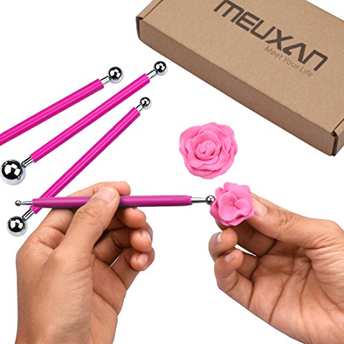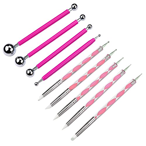 Meuxan 9 Piece Ball Styluses Dotting Tools Rubber Brushes Set for Rock Painting, Polymer Clay & Pottery Craft, Pattern Embossing Art