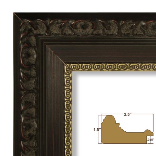 -. Title : 21x25 Picture / Poster Frame, Ornate Wood Grain Finish, 2.53" Wide, Mahogany Red and Gold (9530)