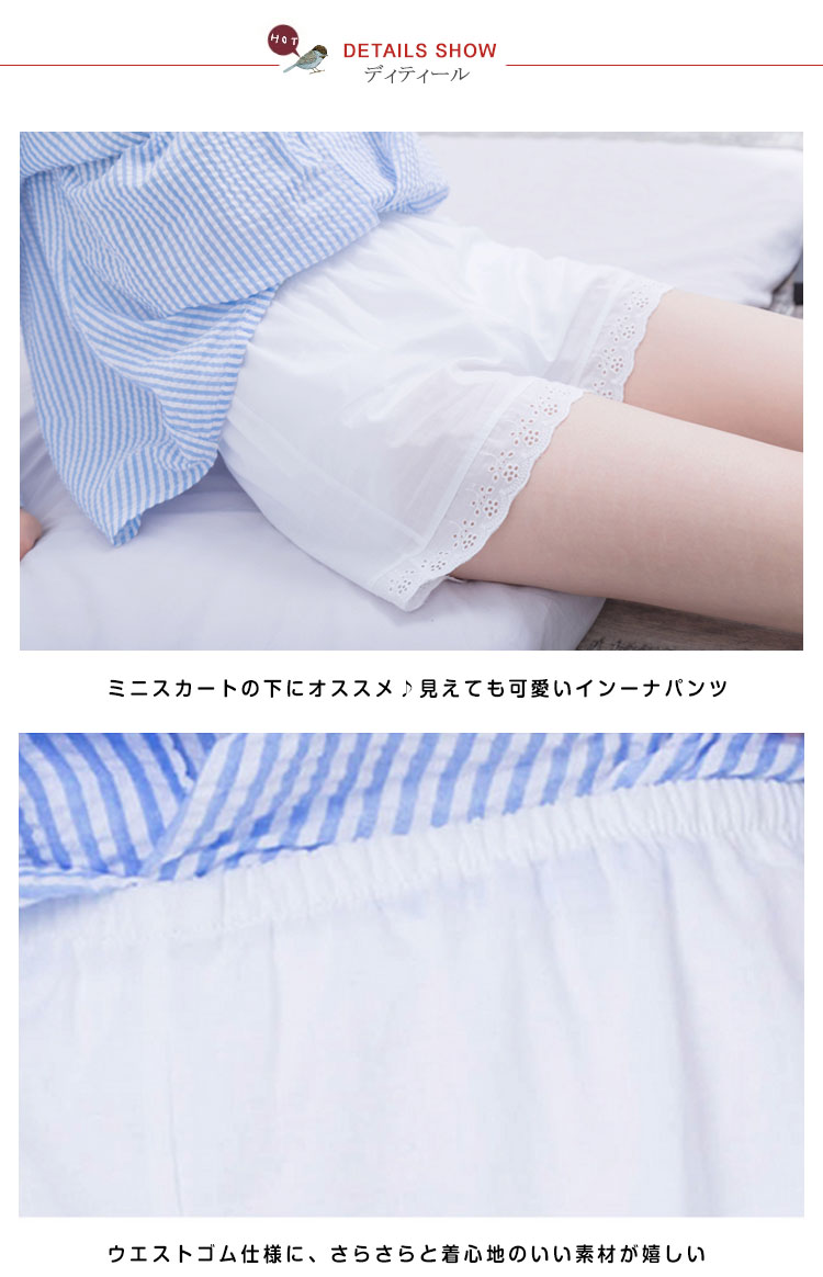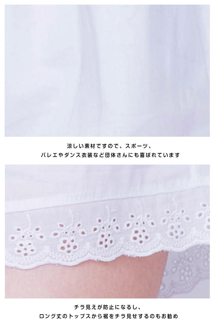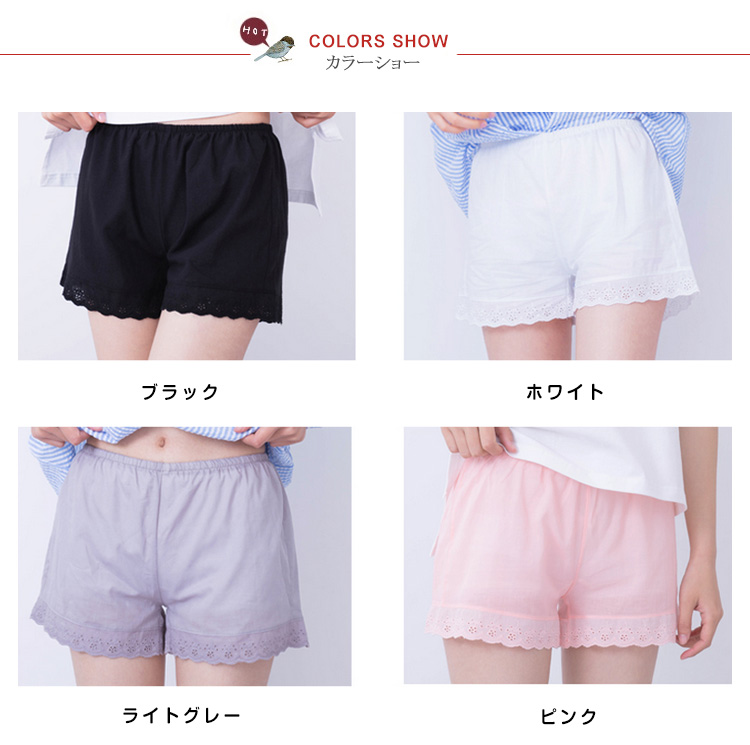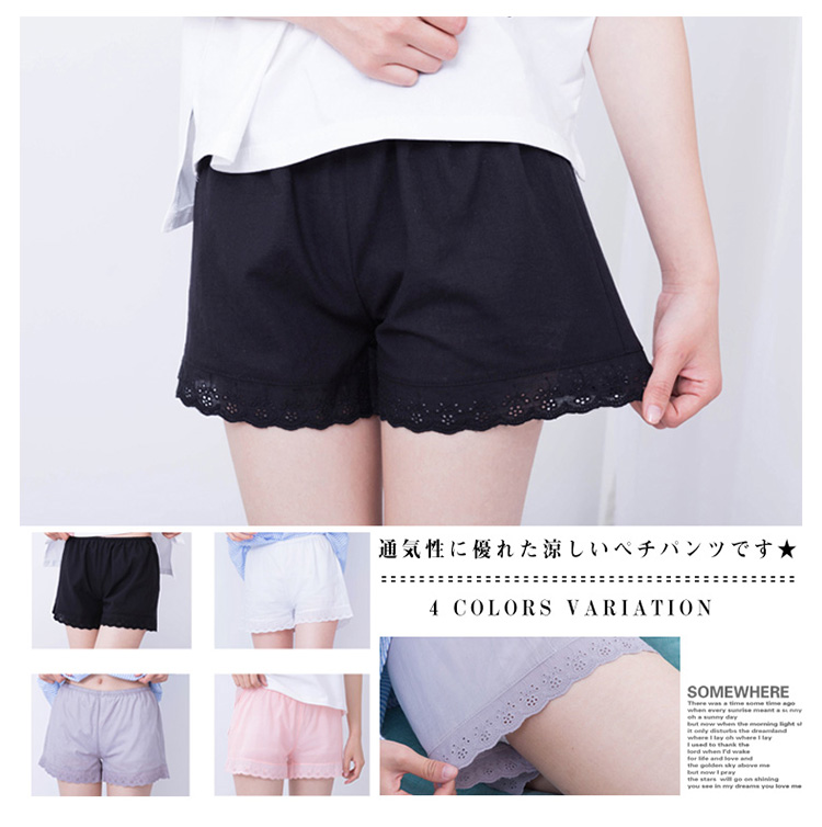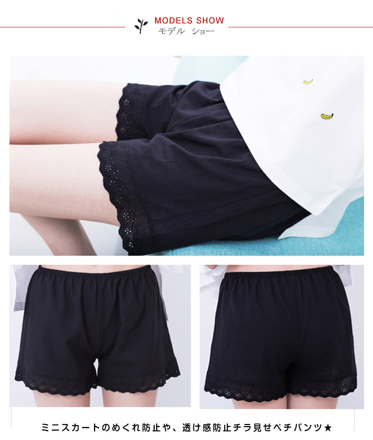 | 通気性に優れた涼しいぺチパンツです★ミニスカートのめくれ防止や、透け感防止チラ見せぺチパンツ★ チュニックやワンピ、スカートの下など、どんなスタイルにも相性★ | |
