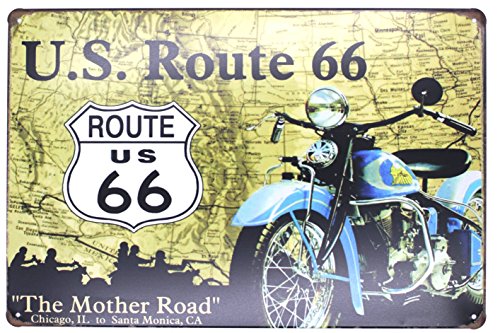 US Route 66 Metal Tin Sign,Classic Decorative Plaque Vintage Style Wall Ornament Home & Coffee & Bar Decor