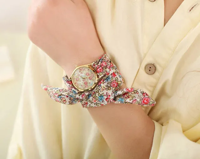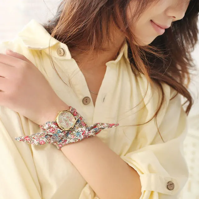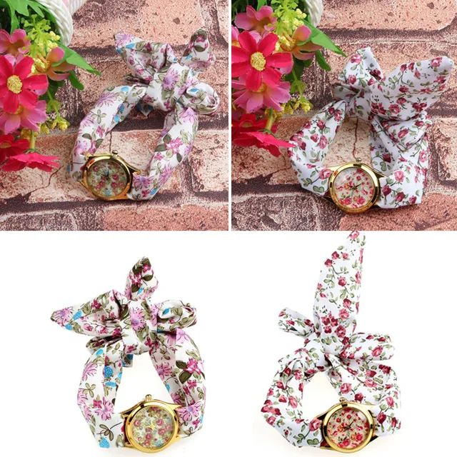 2017 고품질 여성 팔찌 시계 숙녀 시계 밴드 꽃 천 석영 브랜드 꽃 패브릭 밴드 시계 Relojes Mujer