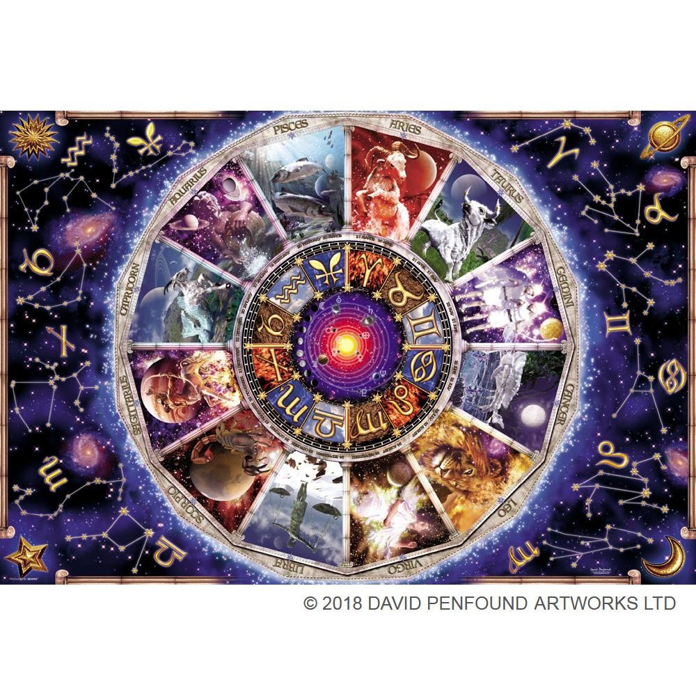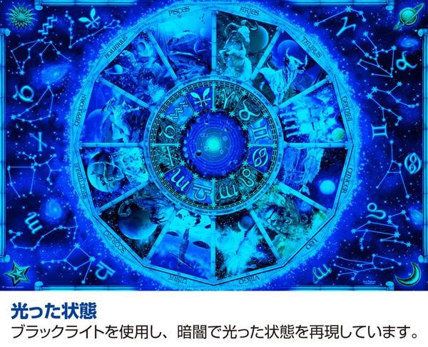 太陽の通り道、黄道に存在する12星座を、それぞれの宮を守護する天使とともに描いたファンタジックなホロスコープのパズルです。蓄光塗料を用いているためパズルの絵柄に光をあてた後、暗い場所で蛍光を発します。 |