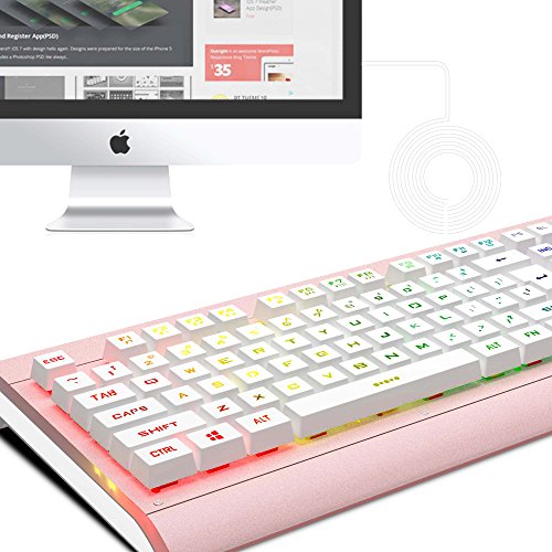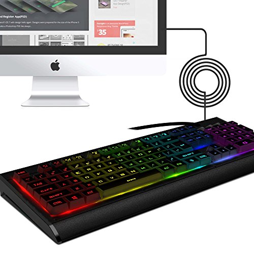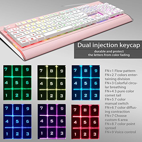 -. Title : OJA Multicolor LED Backlit Gaming Keyboard, Rainbow 7-Colors Voice Control Illuminated Wired Computer Keyboard Red & Colorful Light 104 Keys for PC World Laptop
