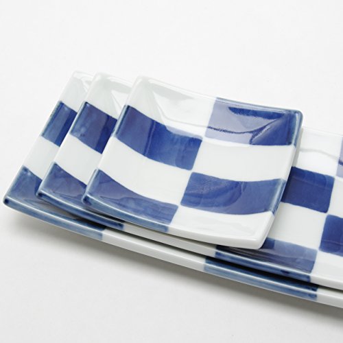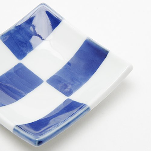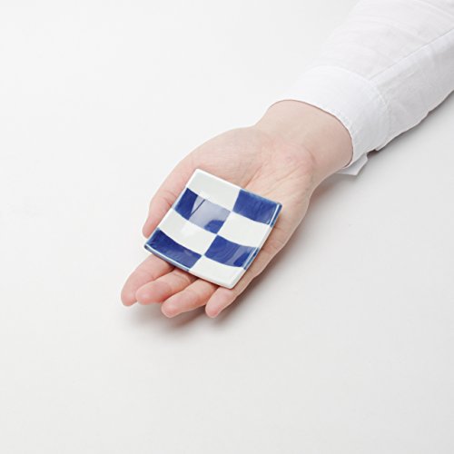 원본상품명: 有田? 染格子市松 角3寸皿 7cm ?平窯 dep1852