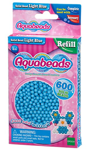 Studio : International Playthings Publisher : International Playthings Binding : Toy Product Description Aquabeads is the original water-activated bead craft product. Made from the highest quality materials, Aquabeads are fun and safe for the entire family. This refill set contains 600 light blue solid beads. Creating Aquabeads is easy - it's as simple as make, spray and they stay! To be used with any Aquabeads Playset. Refill set does not include layout tray, bead case and spray bottle. 0