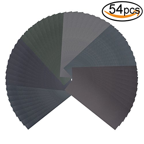54pcs Wet Dry Sandpaper Assorted 3000/2500/2000/1500/1200/1000 Grit for Automotive Sanding by V-story