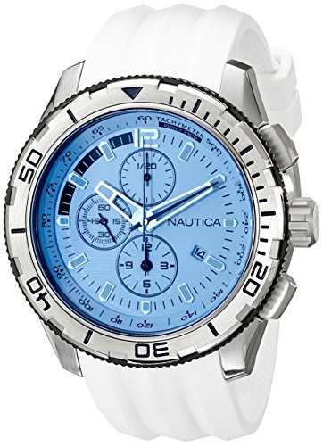 -. Binding : Watch -. Brand : Nautica -. Color : White -. Department : mens -. EAN : 0656086072358 -. Feature : Round watch with skeleton hands featuring chronograph with 1/20 second, 60-second, and 12-hour subdials / 48 mm stainless steel case with mineral dial window / Japanese quartz movement with analog display / Silicone band with buckle closure / Water resistant to 100 m (330 ft): In general, suitable for swimming and snorkeling, but not scuba diving -. Label : Nautica -. Manufacturer : Nautica -. Model : NAD19520G -. MPN : NAD19520G -. PartNumber : NAD19520G -. ProductGroup : Watch -. ProductTypeName : WATCH -. Publisher : Nautica -. Studio : Nautica -. Title : Nautica Men's NAD19520G NST101 Analog Display Japanese Quartz White Watch -. UPC : 656086072358
