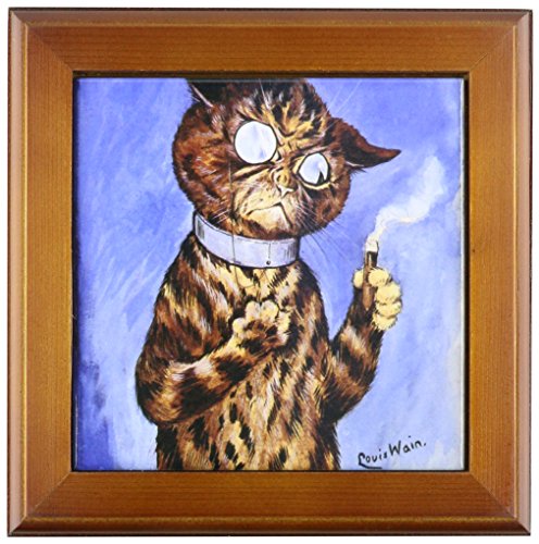 3dRose ft_110350_1 Vintage Cat Louis Wain Animal Art-Framed Tile, 8 by 8-Inch