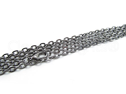 5 CleverDelights Vintage Style Rolo Chain Necklaces - Gunmetal Color - 24 Inch - 3 x 4mm Links - 24"