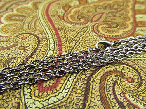 - Gunmetal (dark silver) color -- 3mm x 4mm oval antique-style links -- Jump ring and lobster clasp preattached