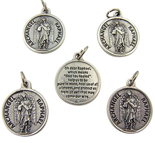Lot of 5 Archangel Saint Raphael 7/8-inch Silver Tone Medal with Prayer on Back