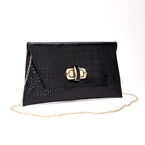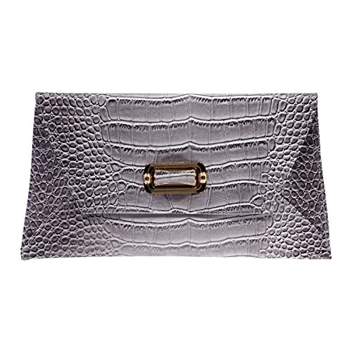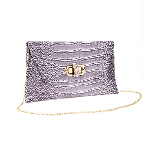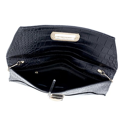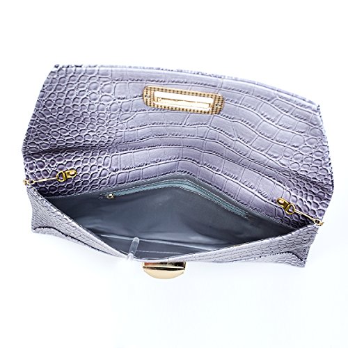 -. Feature : Ready to rock your luxury side? This gorgeous large sized large clutch is perfect for both day and evening wear. Gorgeous colors done in a faux croc emboss. / Flap front closure with large turn-lock closure and a single zippered pocket interior and a single cell phone open pocket with a tuck-away chain strap. VERY roomy inside so you can easily carry your makeup, phone, wallet, etc. / VERY roomy inside so you can easily carry your makeup, phone, wallet, etc. / Measures 13 x .5 x 7". 22" strap drop.