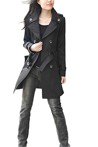 -. Title : ELPIS クール シンプル ダブル ブレスト トレンチ コート 大きい サイズ ミディアム 丈 ブラック シャンパン M L XL XXL XXXL XXXXL