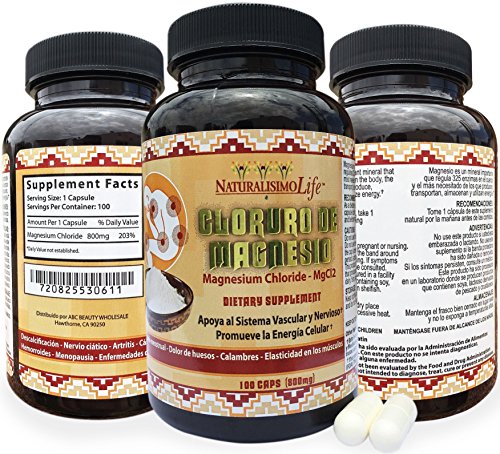 -. Feature : 1 Bottle of Cloruro de Magnesio Magnesium Chloride / 100 capsules 800mg each / Ships same day if paid before 11:00am pacific time, otherwise ships next business day