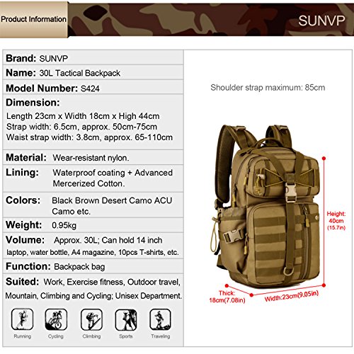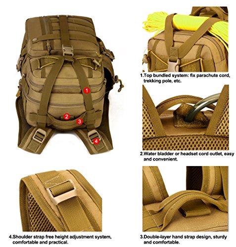 -. Title : Huntvp 30L Tactical Military MOLLE Assault Backpack Pack Large Bag Rucksack Sport Outdoor Gear for Hunting Cycling Camping with Hydration Bladder Pocket