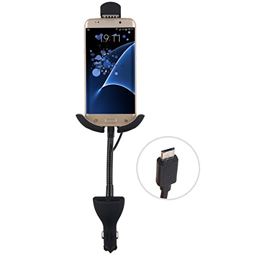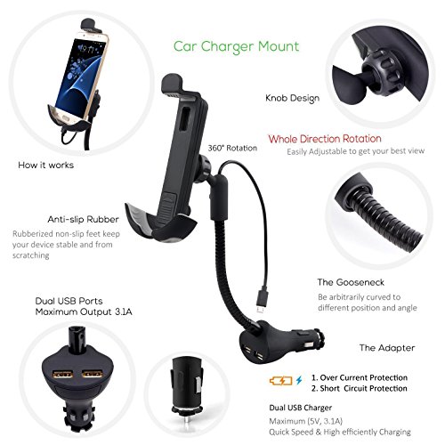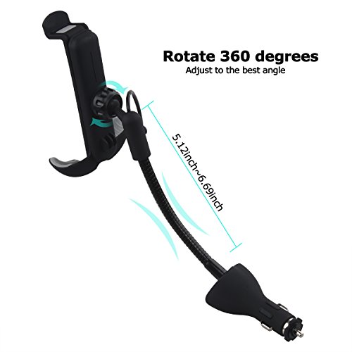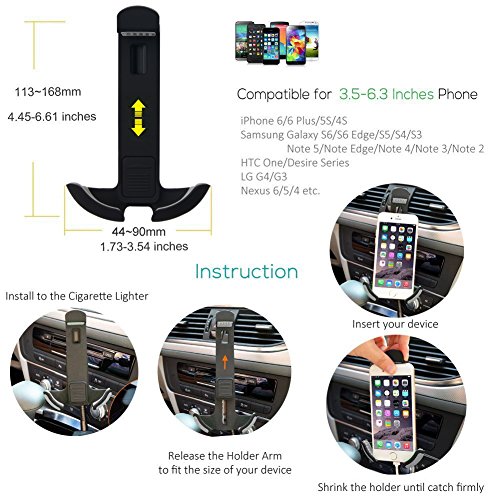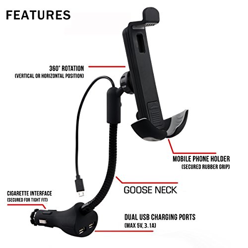 Te-Rich Upgraded 2-in-1 Cigarette Lighter Car Phone Holder Charger Mount for iPhone, Samsung Galaxy and More Android Smartphones - Micro USB Cable, Dual USB, 3.1A Max