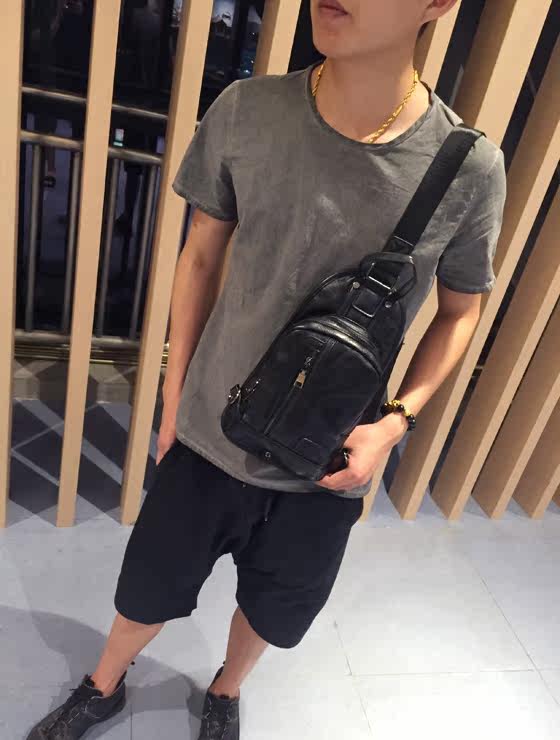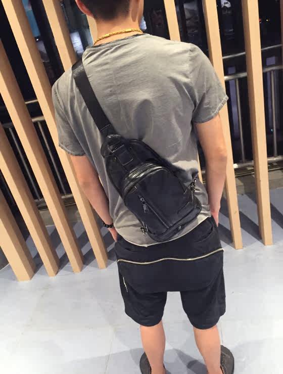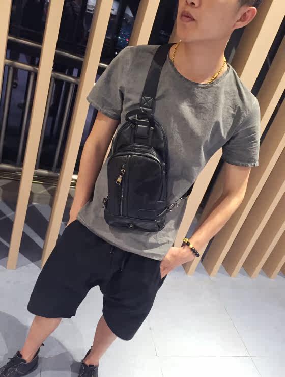 男士胸包韩版潮流时尚休闲小背包拼接小挎包单肩包个性包包百搭包
