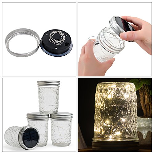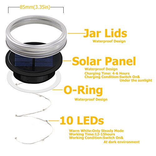【Easy Operate】Fits for most wide mouth mason jar, put the solar panels with string lights into the jar lids ring and turn the switch on.