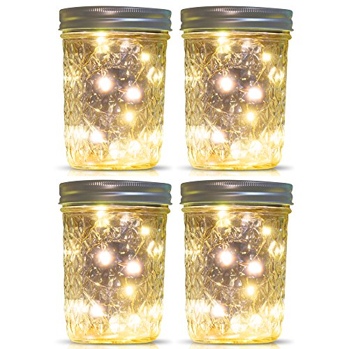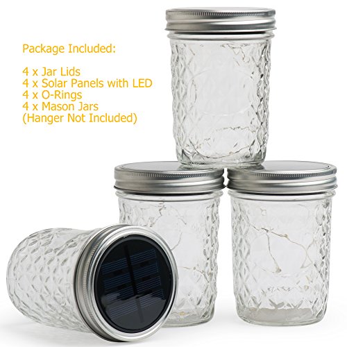 Mason Jar Lights Wide Mouth,WaterProof Outdoor Solar Powered Lights Sliver Lids Warm White Solar Fairy Light String Light, 4 Pack for Wedding Christmas Garden Home Patio Lawn Decor(Jars Included)