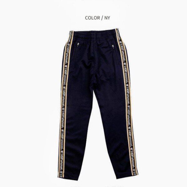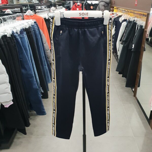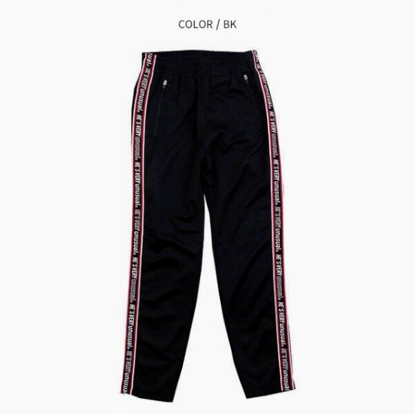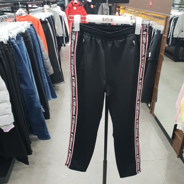 로고 테이프 맨투맨 티 (19S5403) 아이템과 코디 되는 테이퍼드핏 바지로테이프로 포인트를 준 트랙 져지 바지