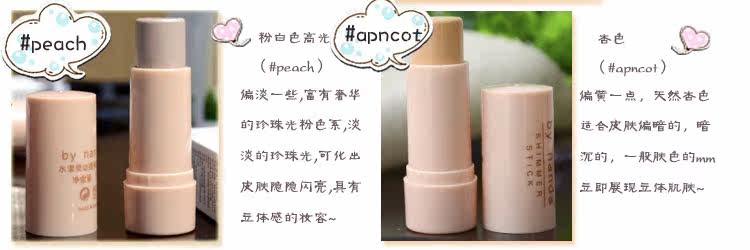 3款不同亮色的高光棒哦~粉白色、粉色、杏色!姑凉们可以根据自己的肤色挑选哈~
