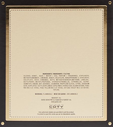 Studio : PerfumeWorldWide, Inc. Drop Ship Publisher : PerfumeWorldWide, Inc. Drop Ship Binding : Misc. Product Description Seductive by Guess is a fragrance for women. Seductive is a new fragrance and it was introduced in 2010. The nose behind this fragrance is Veronique Nyberg. Top notes are bergamot, black currant and pear; middle notes are jasmine, african orange flower and orris root; base notes are vanille, olibanum and cashmere wood.