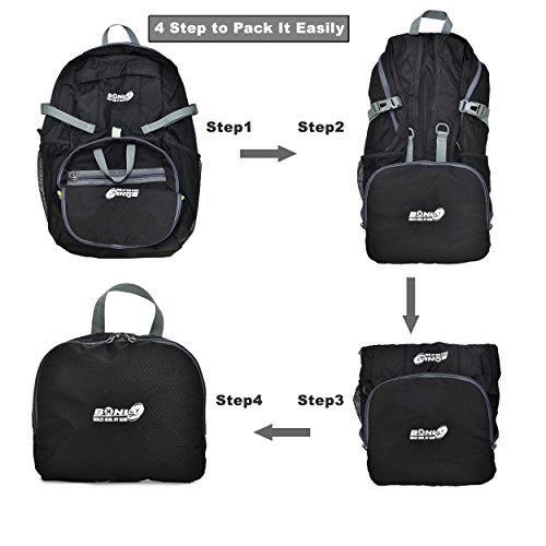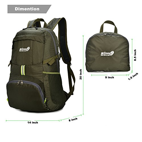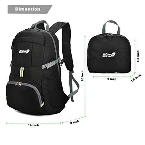 -. Feature : ♥️ULTRALIGHT & DURABLE - This backpack made by high quality tear and water resistant material of nylon fabric,Durable 2-way Abrasion Resistant SBS Metal Zipper across the foldable pack.Provides strengthen and long-lasting performance with ultralight.The stress points of backpack are enhanced by bar-tacks. / ♥️LARGE SPACE & CONVIENENT CARRY - A true space saver backpack.Fold the backpack into its own pocket for storage,then like a handbag.two front pockets are good for holding small accessories and for easy access.unfold it when you want to use,it become a 35Liters Large space Backpack. / ♥️COMFORTABLE & ADJUSTABLE SHOULDER - Breathable mesh shoulder straps with plentiful sponge padding help relieve the stress from your shoulder. The length of the shoulder straps is adjustable. The chest strap with a whistle buckle help you in securely place. / ♥️WIDELY APPLY - Perfect for day trips,vacation,travel,day hikes,school,camping and shopping. / ♥️GUARANEE:60 Day, 100% Satisfaction, Money Back Guarantee.If for any reason you are not 100% completely satisfied with this product, please contact customer service within the first 60 days period after asked. We will immediately refund your purchase P.R.Ice - no questions asked