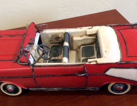 1957 Convertible Chevrolet 13in Collectible Sheet Metal Car Red
