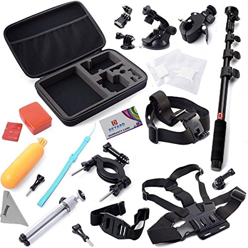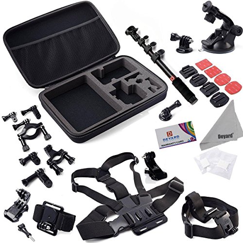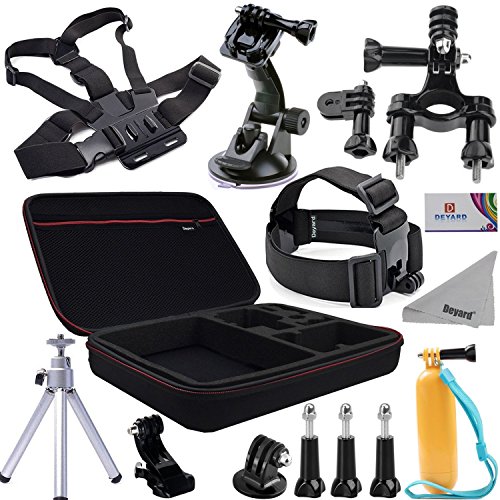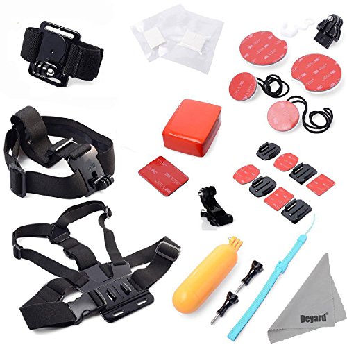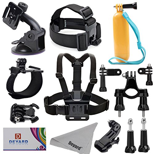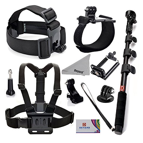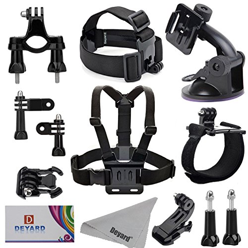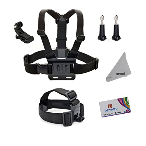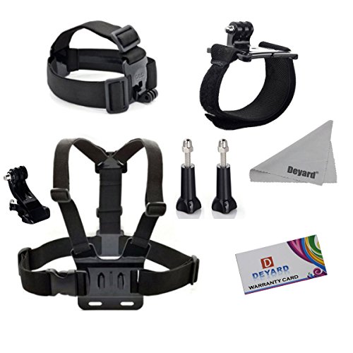 Deyard zg-632 gopro accessories kit set of 2 for gopro hd hero 1 2 3 &3+: head strap mount + chest harness + j-hook mount + 2pcs thumbscrews + deyard superfine fiber cloth -- compatible with all gopro cameras, gopro hero3+ hero3, hero2, and hd hero original cameras -- keeps your hero camera on your head without a helmet. The "chesty" is fully adjustable to fit all sizes. It is easy to capture immersive video and photo footage from your chest. -- makes it easy to capture immersive video and photo footage -- perfect for skiing, mountain biking, motocross, climbing swimming performing search , rescue operations, paddle sports, or any activity where you want to get a great view of the action. -- pefect set: head strap with long thumbscrew, no need for searching single thumbscrew. Chest harness comes with j-hook mount. Ready to use. Package: 1 x head strap mount 1 x chest harness mount 1 x j-hook mount 2 x thumbscrew 1 x deyard lcd wiperFeature