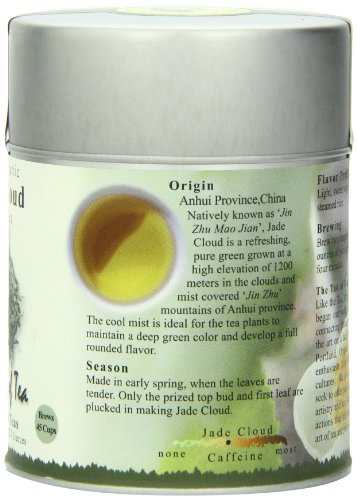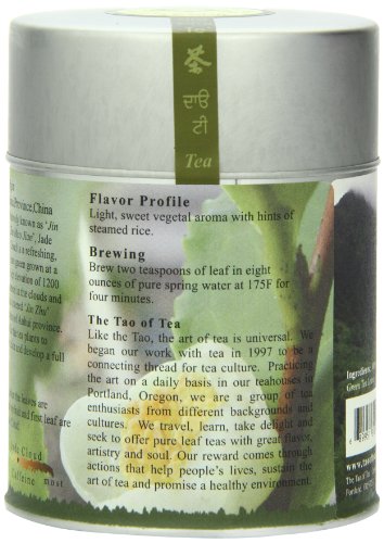 -. Binding : Grocery -. Brand : The Tao of Tea -. EAN : 0689951310958 -. Feature : 100% organic; pure leaf; green tea / Product of Oregon, USA -. Label : The Tao of Tea -. Manufacturer : The Tao of Tea -. NumberOfItems : 1 -. PackageQuantity : 1 -. ProductGroup : Grocery -. ProductTypeName : GROCERY -. Publisher : The Tao of Tea -. Size : 2 Ounces -. Studio : The Tao of Tea -. Title : The Tao of Tea, Jade Cloud Green Tea, Loose Leaf, 2 Ounce Tin -. UPC : 689951310958