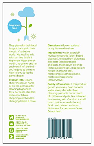 Babyganics Toy, Table & Highchair Wipes, Fragrance Free, 25 Count (Pack of 3)