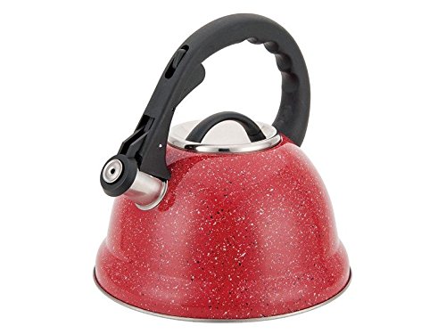This tea kettle boils water quickly and whistles to let you know it's done. Crafted of 18/10 surgical stainless steel and marble coated. Extra-large easy-grab handle Drip less spout Capsule base ensures quick and even heating Features a large opening for easy filling and cleaning. Use on gas, ceramic and electric stove topsFeature