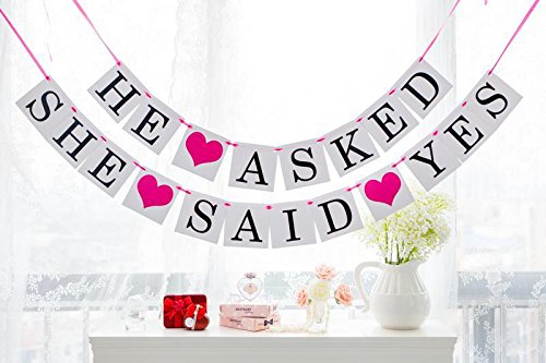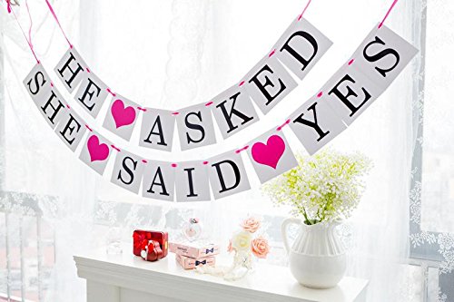 Since 1 Set He Asked She Said Yes Banner - Engagement Bridal Shower Party Decorations - Photo Props Signs