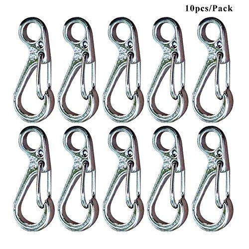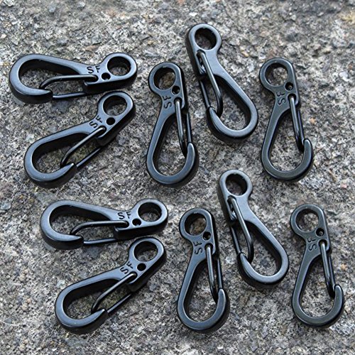 -. Feature : 10PCs/Pack Mini type Snap SP.R.Ing Clip Lock Hooks Carabiners Key Chain Clip Hooks; / Size:Length 3cm/1.18", Width 1cm/0.39"; / Bearing:the maximum pull off force of about 12kg; / Simple outlook and practical; / Suitable for:Hanging on the bag, key rings, bottle, connecting tent and ropes, etc.