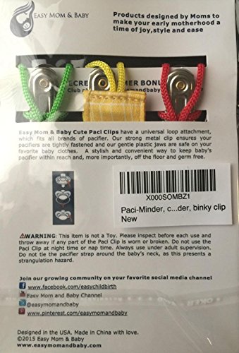 -. Feature : The Paci-Minder is stylish, gender neutral and made with the best quality fabric and stitching / Washable and Non Toxic -with nickel-free, lead-free, and latex-free metal clips, so your baby is safe from harmful chemicals / Highly Functional - keeps your baby's binky from getting lost AND you can also attach stuffed animals, teething rings, blankies and other small toys / The Paci-Minder pacifier holder is perfect for your baby gift registry or as an inexpensive baby shower or new mom gift