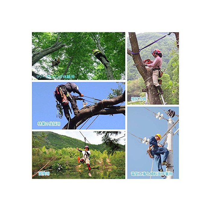 용도:등산,트리 클라이밍 체험용,높은 곳 작업용,매달림 강하,타카기 전지 작업,조원,정원수의 전지,임업의 벌채,가지치기,동굴 탐험,소방,공중 작업,수풀 에서의 모험등으로 사용 하실 수 있습니다.